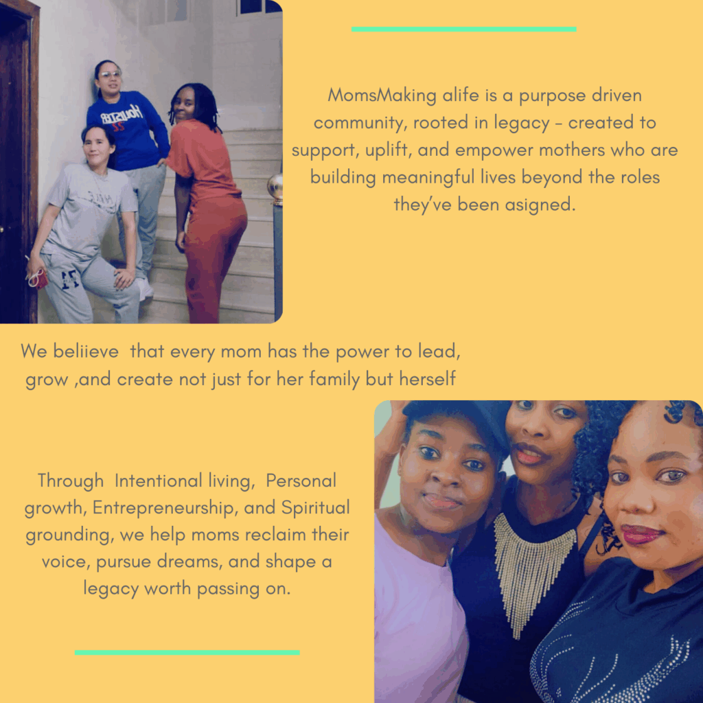 A community to uplift mothers who are building their identity , reclaiming their voices, and creating a life of purpose on their own terms